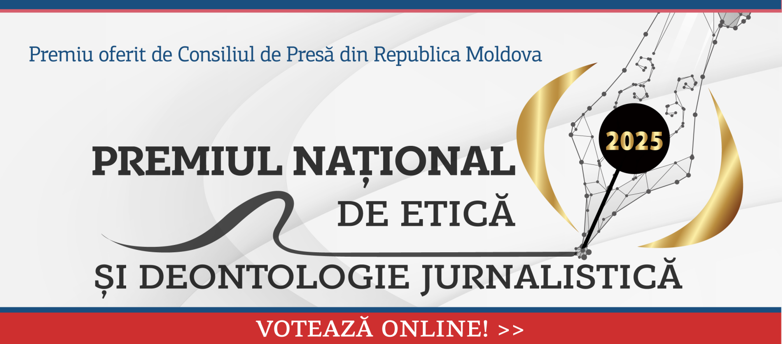 Consiliul de Presă din Republica Moldova lansează concursul pentru decernarea Premiului Naţional de Etică şi Deontologie jurnalistică 2025. La concurs pot fi propuse redacții ale instituțiilor mass-media și jurnaliști/jurnaliste care servesc ca exemplu de respectare a Codului deontologic al jurnalistului. Premiul va fi acordat după o evaluare cu participarea publicului şi a unui grup de experţi, iar înmânarea Premiului va avea loc la Forumul Mass-Media 2025.