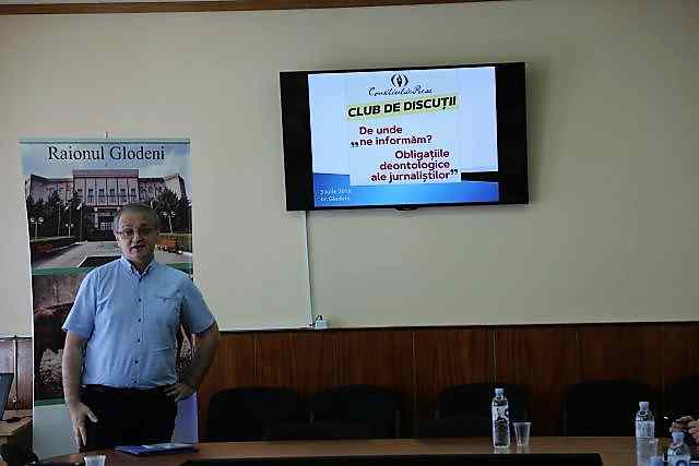 Ce drepturi și ce obligații au jurnaliștii? Unde se pot adresa consumatorii de media când jurnaliștii le încalcă drepturile? Aceste, dar și alte aspecte utile au fost discutate cu locuitori ai orașului Glodeni în cadrul unei dezbateri, organizate de Consiliul de Presă. Petru Macovei, secretarul Consiliului, le-a vorbit participanților despre etica și responsabilitățile jurnaliștilor, iar consumatorii de media au aflat cum şi unde pot depune o plângere atunci când jurnaliştii încalcă prevederile Codului deontologic.