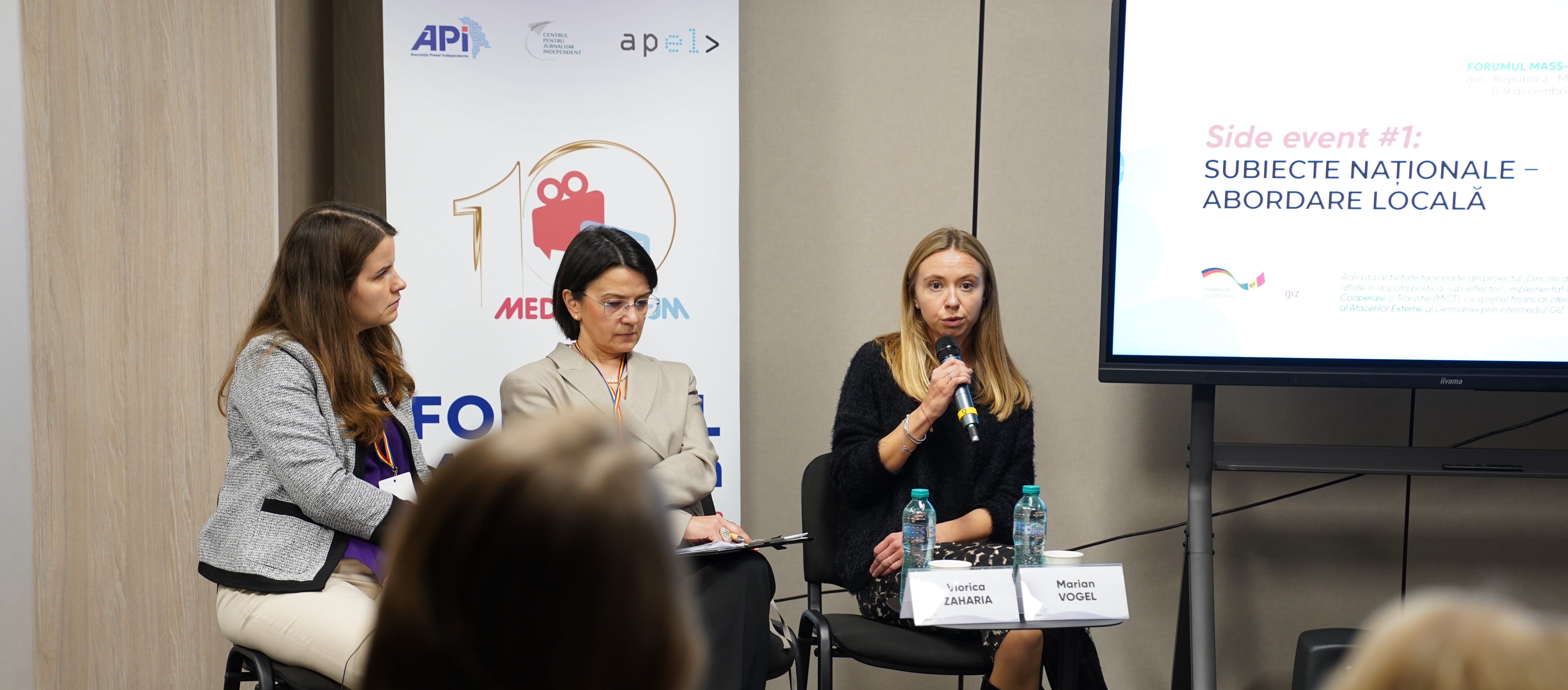 În cadrul unui eveniment special la Forum s-a discutat detaliat despre situația presei locale din R. Moldova și rolul acesteia în consolidarea democrației și contracararea dezinformării. Magdalena Poirier, șefa Secției Cultură și Presă a Ambasadei Germaniei la Chișinău, Marian Vogel, directorul regional pentru Europa de Est și Caucazul de Sud al organizației germane Media în Cooperare și Tranziție, Cristian Jardan, ministrul Culturii, Petru Macovei, directorul executiv API, și Viorica Zaharia, președinta Consiliului de Presă, au vorbit despre încrederea în presa locală versus cea națională, necesitatea unor strategii și programe separate de dezvoltare a presei regionale, dar și despre probleme deontologice, cum ar fi preluarea excesivă a comunicatelor oficiale și a știrilor naționale fără relevanță regională. La îndemnul moderatoarei Victoriei Dumbravă (Agora.md), jurnaliștii și creatorii de conținut din regiuni au povestit despre experiența și beneficiile participării lor în proiectul „Dincolo de Chișinău: Regiunile aflate în dispută politică, sub reflector”.